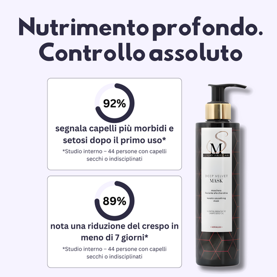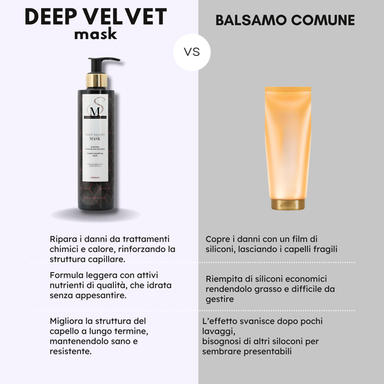 Abbiamo formulato Deep Velvet per nutrire davvero i capelli.Altri trattamenti si fermano a un effetto momentaneo.